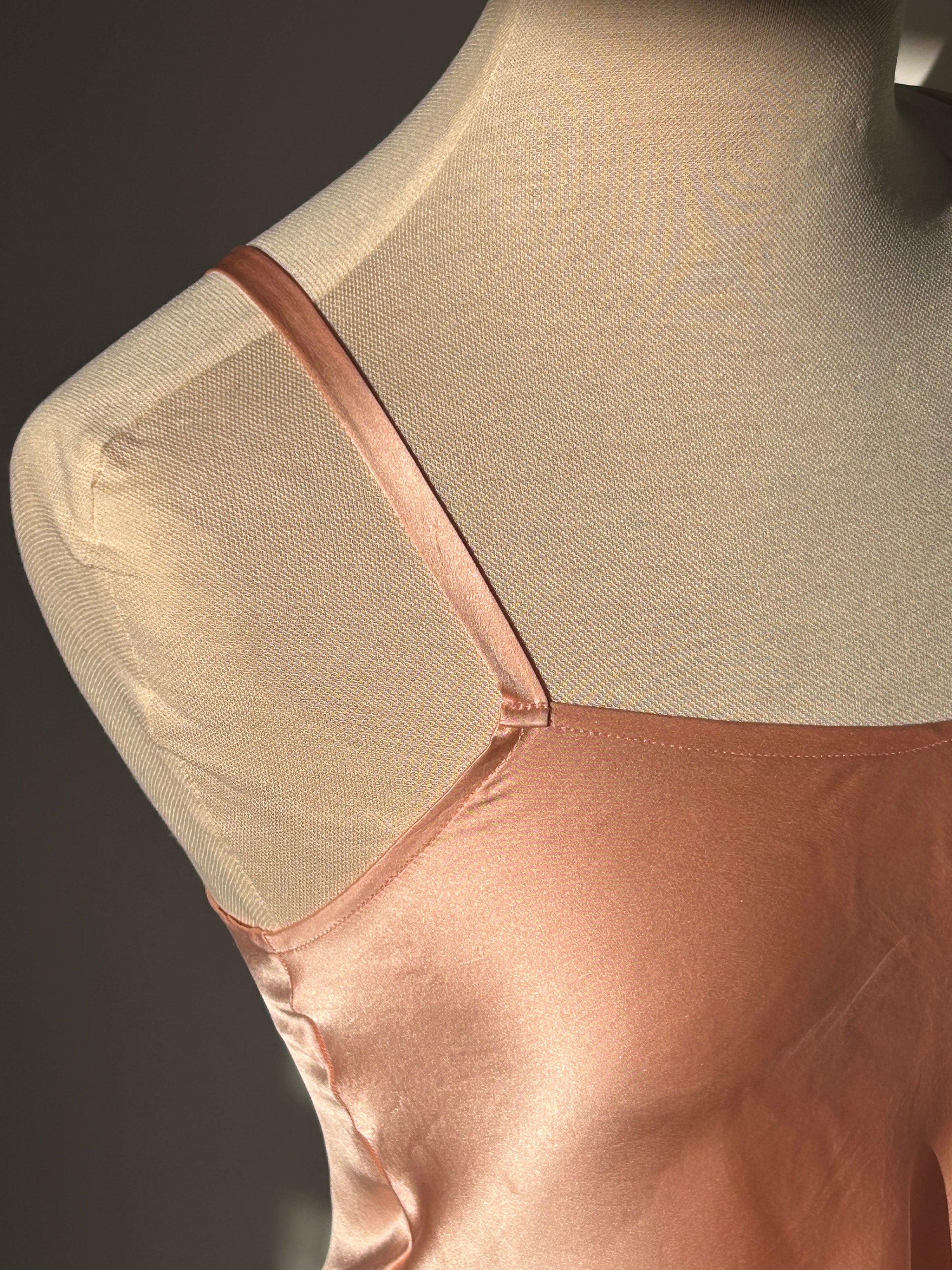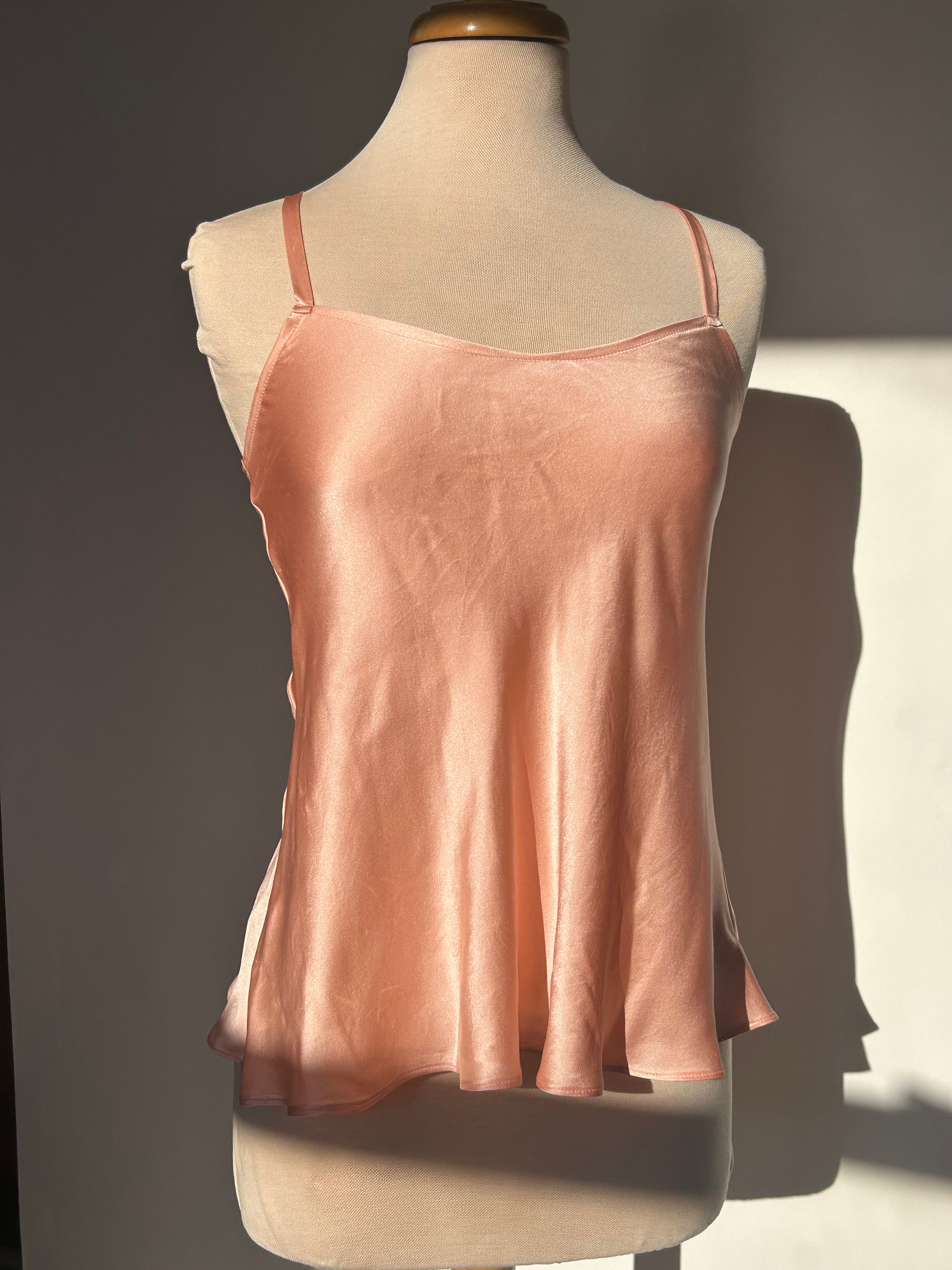 Silk against bare skin just is the best feeling. This cute racerback silk Charmeuse camisole is cut on the bias. Great choice if you have sensitivity issues. I cut these camisoles with a greater fullness in the front so they hang away from the belly. The straps are adjustable.
